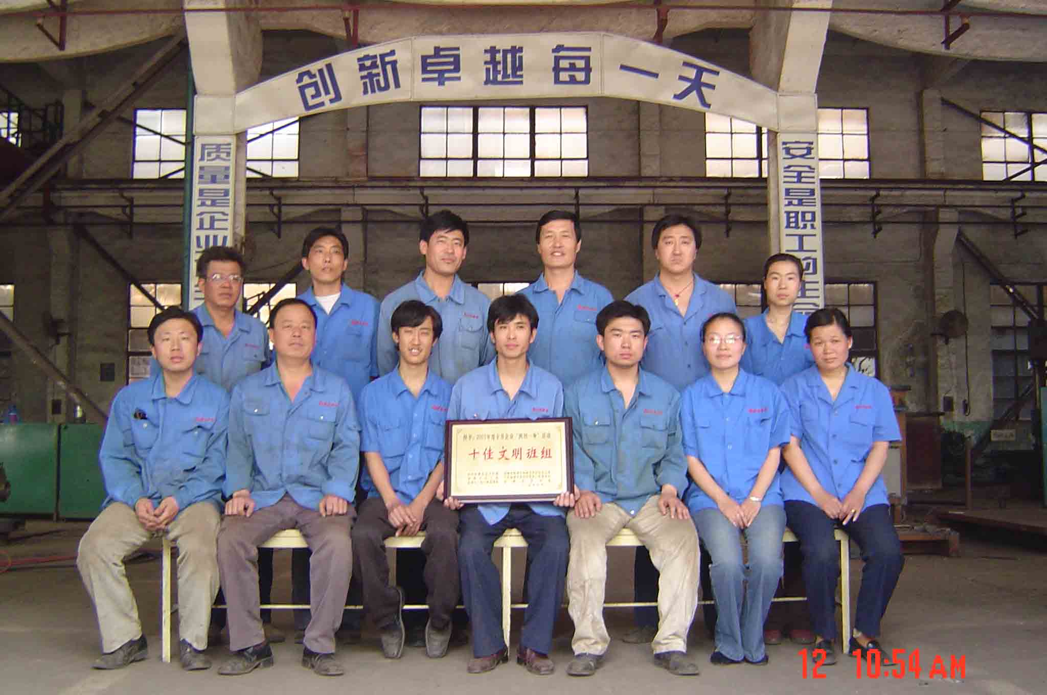 我公司铆焊车间一班,在2003年度全市企业“两创一争” 活动中,被中共淄博市宣传部、淄博市精神文明建设委员会等六个部门抒予市“十佳文明班组”光荣称号。在2003年中,铆焊一班的全体班组成员在班长尹玉博同志的带领下,团结实干、勇于创新、敢打硬仗,在公司各项重大生产任务中起了主力和骨干作用。得此殊荣,当之无愧。
