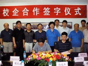 为进一步促进产学研紧密结合,更好地利用高校科技和人才资源,增强我公司自主创新能力,促进企业又好又快发展。2008年7月5日,公司董事长孙龙平与中国石油大学机电工程学院齐院长在我公司签订了“共建教学科研实践基地协议书”。